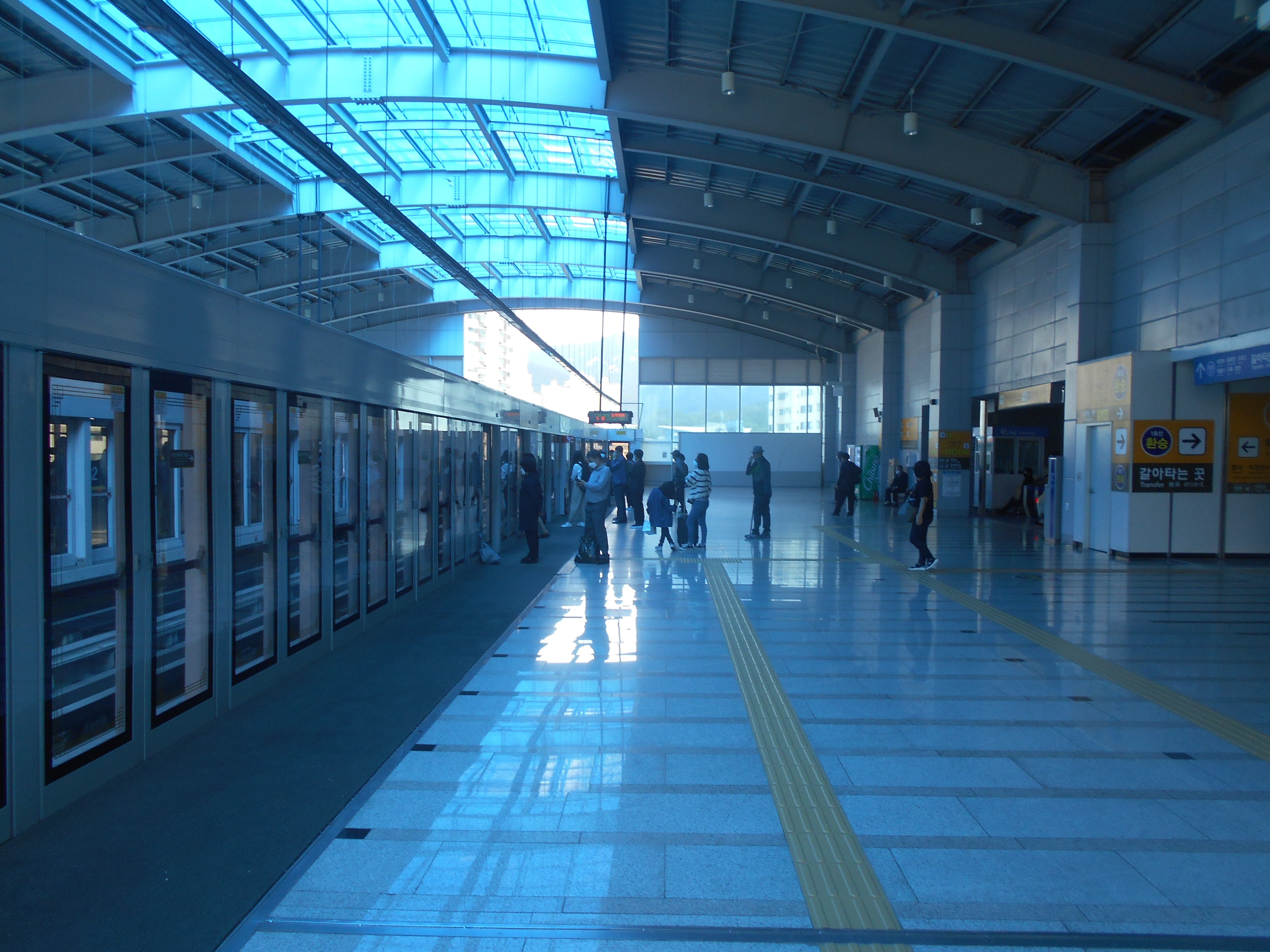 방식의 고무차륜 경전철이 운행하고 안내 등에 사용되는 색은 서울지하철 3호선이 사용하는 도색인 주황색을