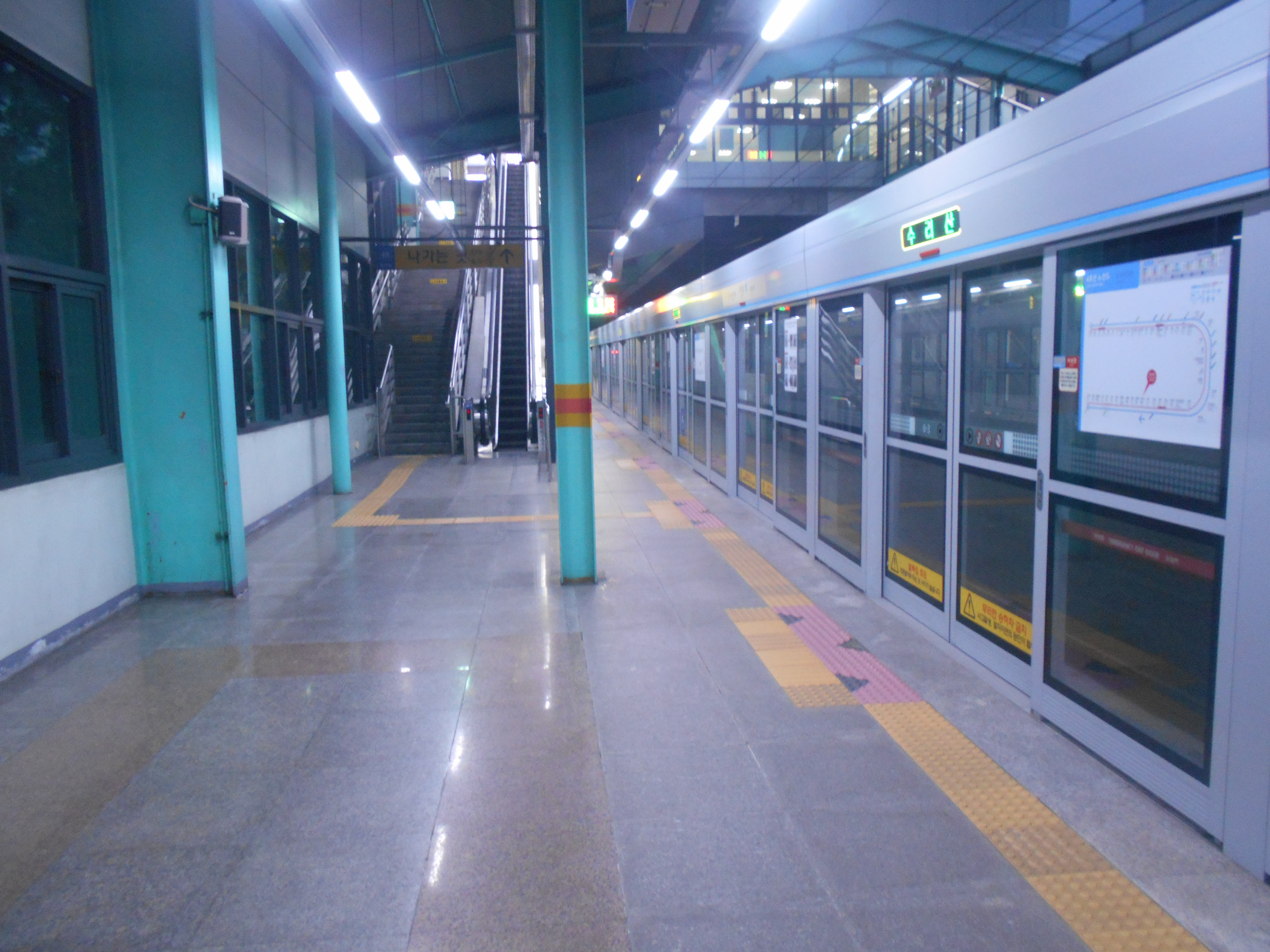 전동차와 철도청 소속 4호선 전동차가 정차하며, 4호선 전동차가 수리산역을 출발하여 대야미역 방향으로 운행할 때