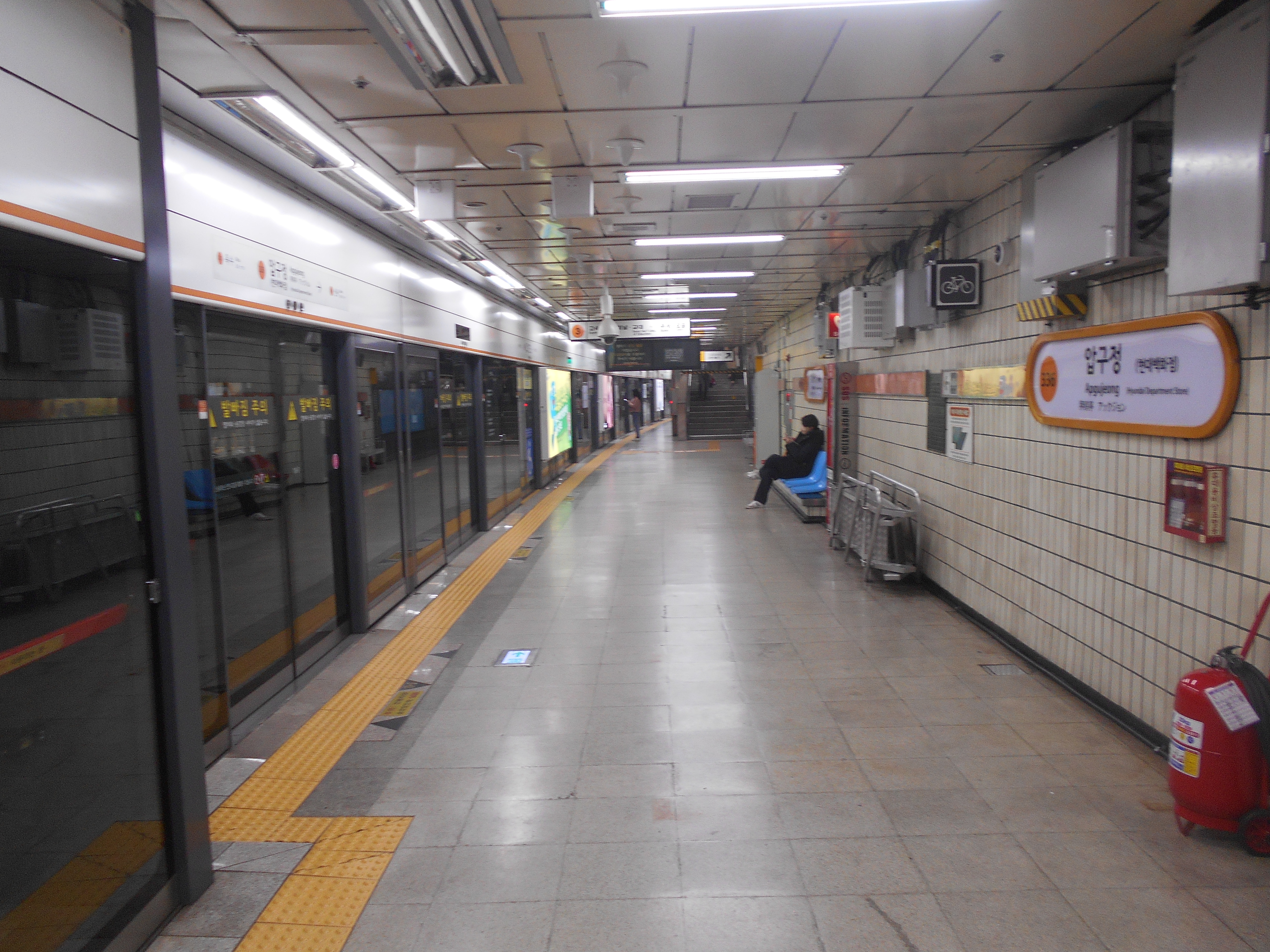 게이트 방식이 변경됨에 따라 반대편 승강장 횡단불가역으로 지정되었으며, 압구정역의 경우 회차를 위한 유치 선로